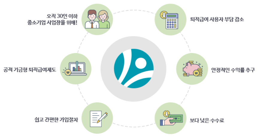 [30인 이하의 중소사업자의 납입금 + 근로자의 납입금]을 공동의 기금으로 조성 및 운용하여 근로자의 퇴직급여로 지급하는 제도입니다.