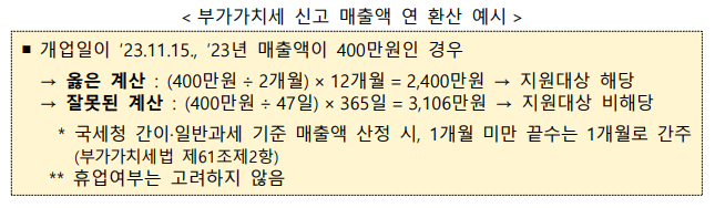 23년에 개업하신 분들 중 계산이 어려우신 분들은 아래 환산예시를 참고하시어 계산해 보시면 됩니다.