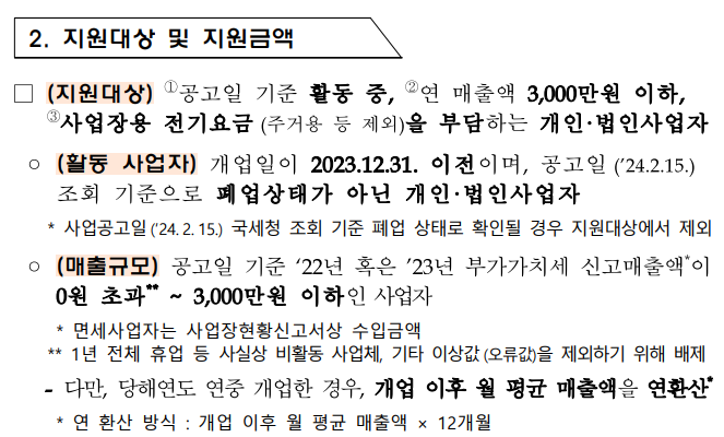 1. 대상자 선정에 활용되는 매출액 기준은 국세청 부가세 신고 매출액을 근거로 하며 개별증빙은 불가합니다.