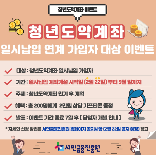 저도 오늘 자로 청년희망적금이 만기 돼서 청년도약계좌로 바로 갈아타고 이벤트까지 신청했습니다.