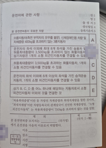 2. B, C, D, E범주로 발급한 국제운전면허증