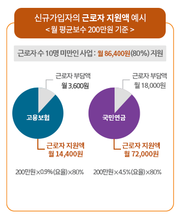 적용 전 적용 후 총 절감 효과 국민연금 (4.5%) 92,730 18,540 74,190 고용보험 (1.15%) 23,960 4,730 18,960 근로자의 절감 효과는 매달 91,500원
