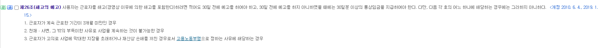 따라서 수습기간 내에 해고는 30일 전에 해야 할 의무가 없기 때문에 법적으로 문제도 없고, 해고예고수당을 지급하지 않아도 됩니다.
