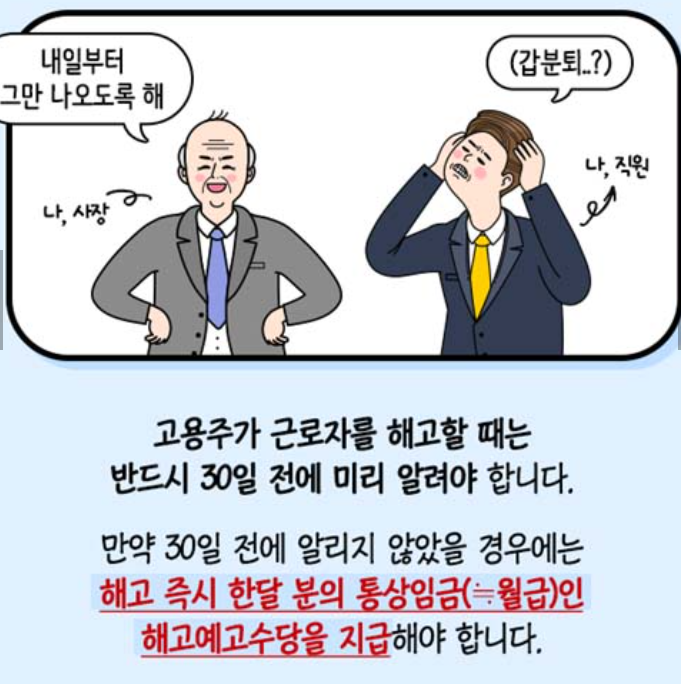 최소한 다른 직장을 알아보거나 다른 방안을 찾을 시간이 필요함에도 불구하고 일방적으로 해고 통보를 당하셨다면 오늘 제 글을 꼭 확인해 주세요.