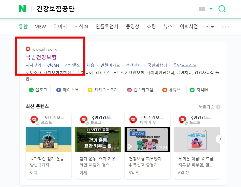 1. 네이버에서 [국민건강보험공단] 검색 후 접속