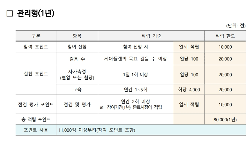 정부에서는 국민건강증진을 목표로 국민의 건강상태를 파악, 국민 스스로 건강생활을 실천할 수 있도록 걷기, 검진, 체험 등을 통해 현금처럼 사용할 수 있는 지원금을 주고 있습니다.