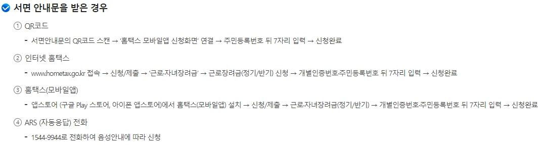 근로장려금 서면 안내문 3. 안내받지 않은 경우