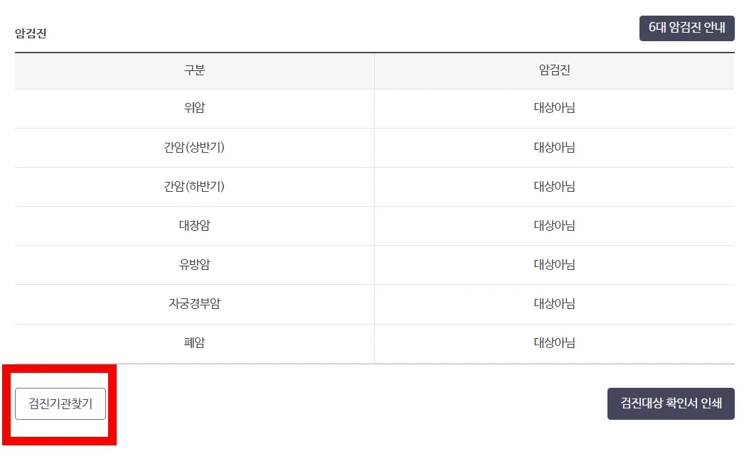 1. 하단 스크롤 후 [검진기관 찾기] 클릭