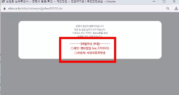 4. 안내된 비밀번호 입력 후 납부확인서 내용 확인하면 끝