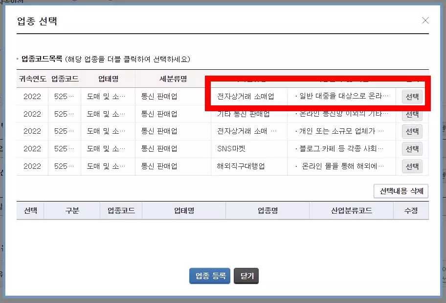 *업종 선택 시 [일반스마트스토어 -전자상거래 소매업] / [해외직구대행 - 해외직구대행업]