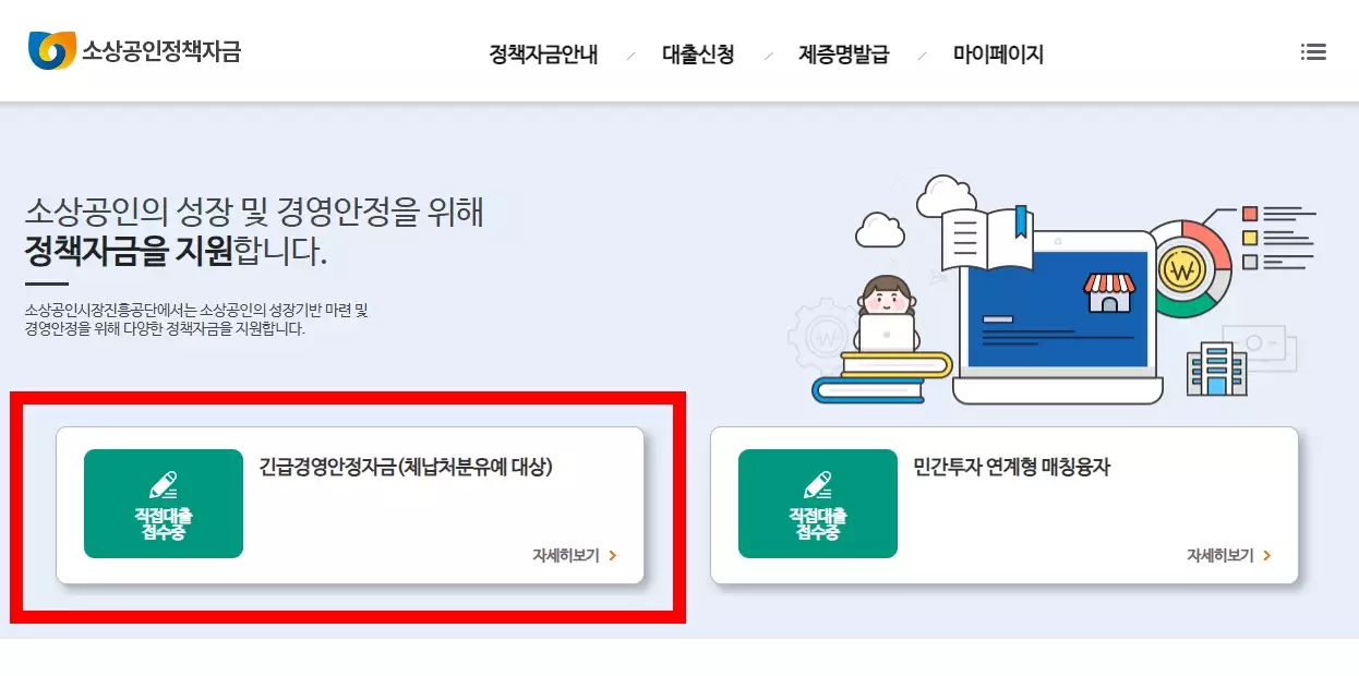 그중 긴급경영안정자금이나 사회적 재난, 자연재해의 피해로부터 긴급한 자금조달을 통해 소상공인의 지원을 돕는 정책자금입니다.