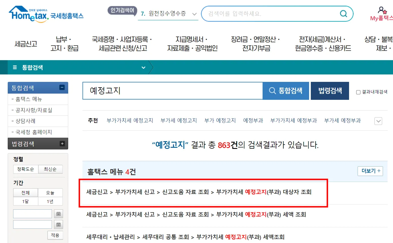 부가세 예정고지세액 납부 전, 대상자 여부를 먼저 조회할 수 있습니다.