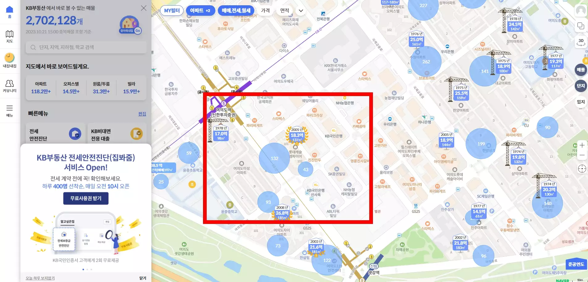 KB시세조회서비스는 국민은행에서 제공하는 정보입니다.국토부보다 훨씬 보기 좋습니다.